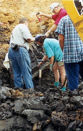 Excavations to see and sample the layered clays, May 31, the day the first bones were found.