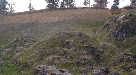 Appearance of Fulkerson cut after being seeded, south slope in background. New chain link fence, capped with barbed wire, is visible above and behind the cut. Photo Dr. Robert Hatcher.