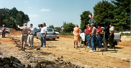 Reporters swarm the site after newspaper stories appear. Among many others are Nick Fielder,