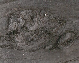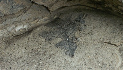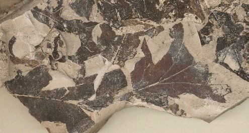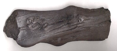 Carbonized oak leaf in soft laminated clay and silt. Image is approximately natural size.